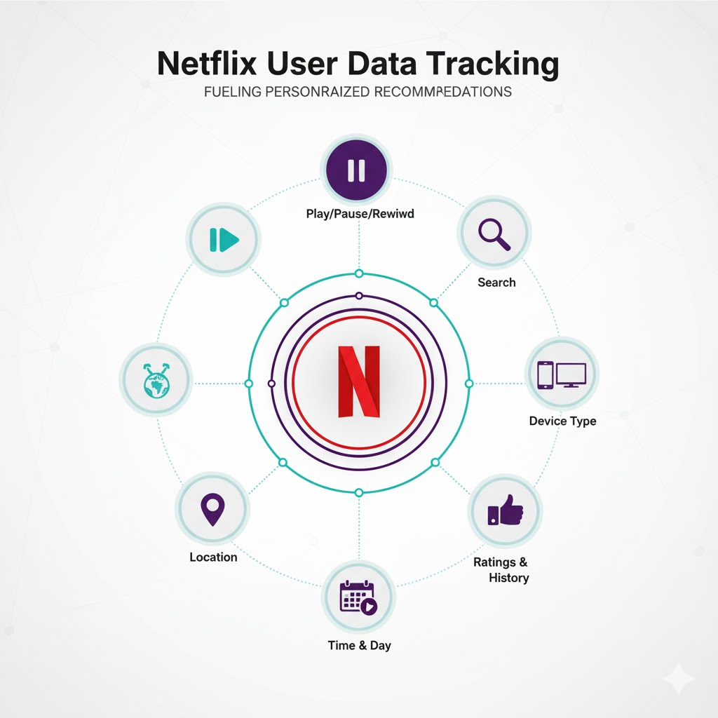 Netflix collects granular behavior data at every interaction point to train its recommendation models.