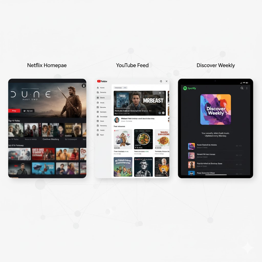 The stakes matter. Spotify's recommendation engine helps retain users who would otherwise drown in 100 million songs. YouTube's algorithm keeps viewers watching for 1 billion hours daily. Amazon's product recommendations influence 35% of the company's revenue. These aren't nice-to-have features. They're the profit margins. But they also shape what billions of people consume, which shapes culture, news intake, and radicalization pathways. Getting this right (or wrong) affects the real world.