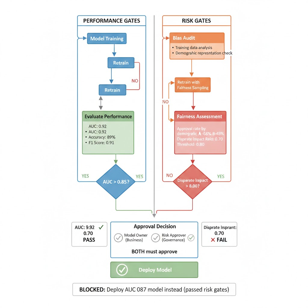 - Risk gates block high-performing models. Fairness and safety are non-negotiable.