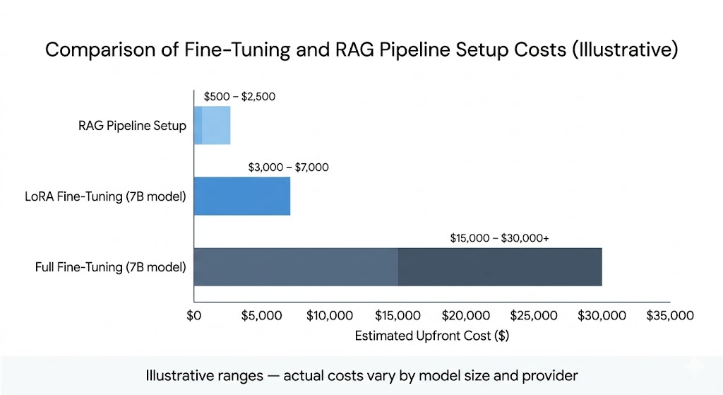 The cost of getting it wrong has increased. Fine-tuning is cheaper than it was in 2023, but total project costs including data preparation, iteration cycles, and ongoing retraining still run from $1,000 to $30,000+ depending on approach and model size. Teams that fine-tune to solve a knowledge problem pay those costs and still ship a broken system.