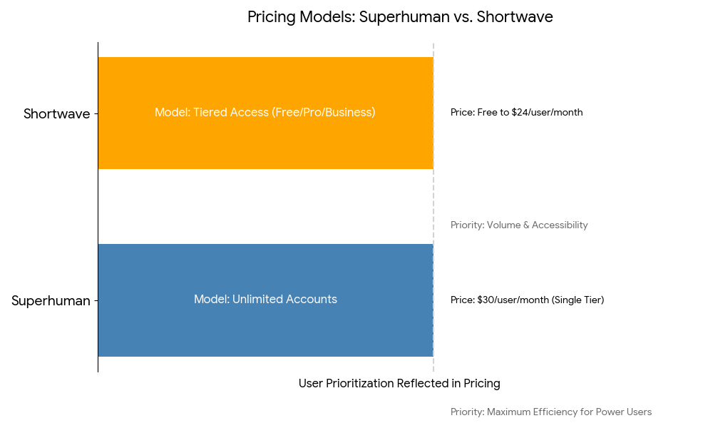 Superhuman’s unlimited accounts vs Shortwave’s tiered access model shows different user priorities
